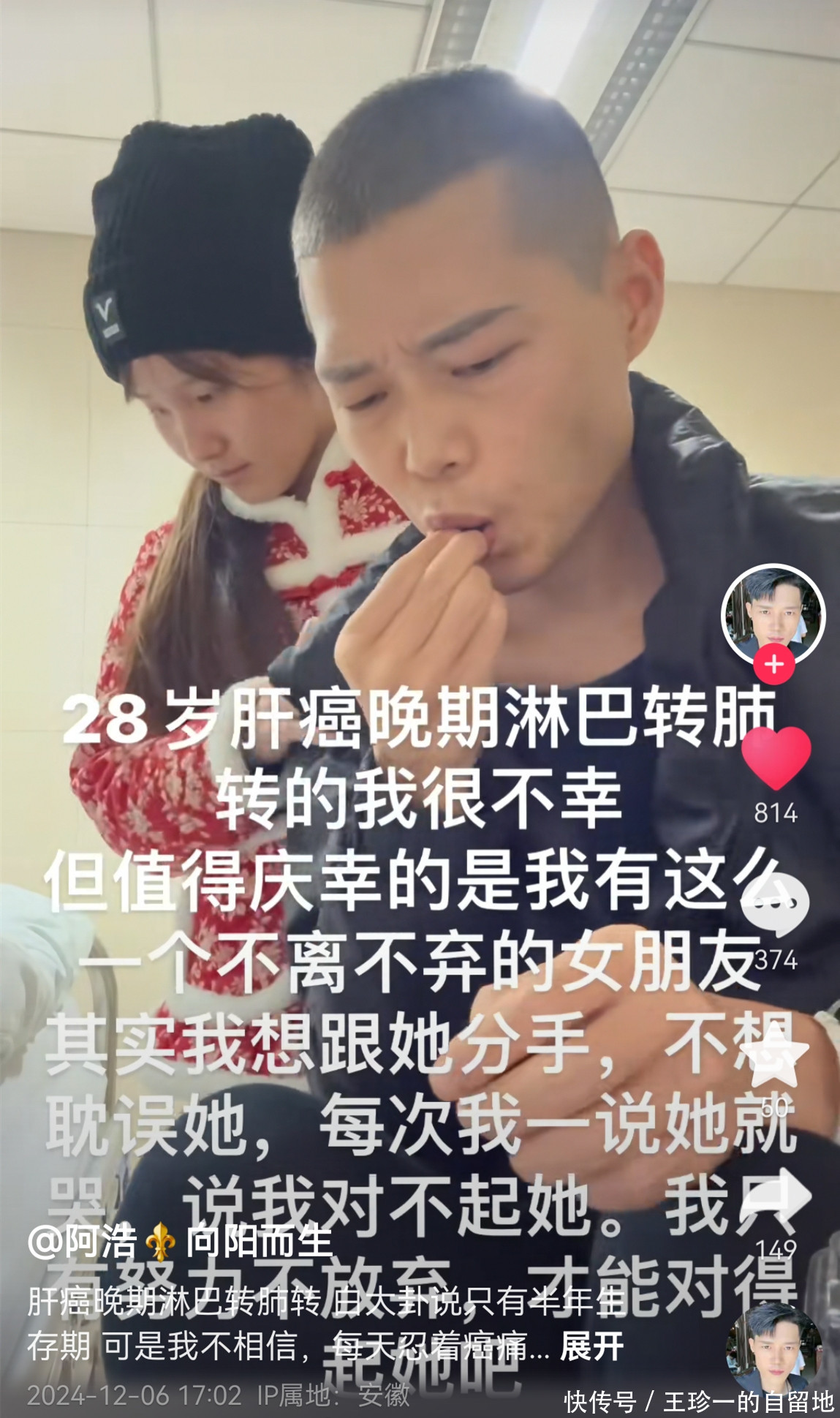 令人没有想到的是2024年9月,阿浩确诊了肝癌,当时医生告诉他他只有半年的寿命了。