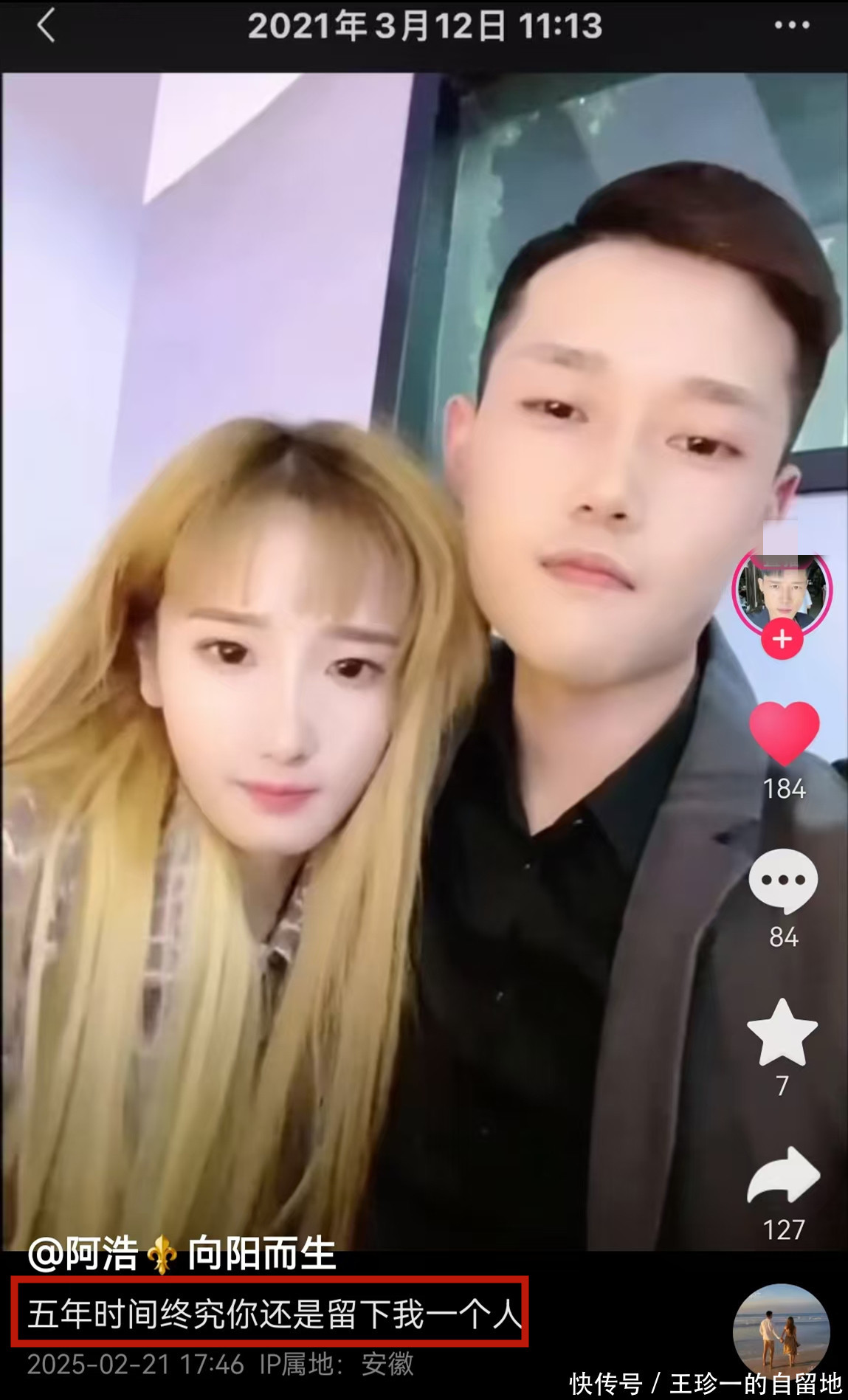 2月21日下午5点多,阿浩的女朋友小土豆通过阿浩的账号发布了阿浩去世的消息。她写道:五年时间你终究还是留下我一个人。