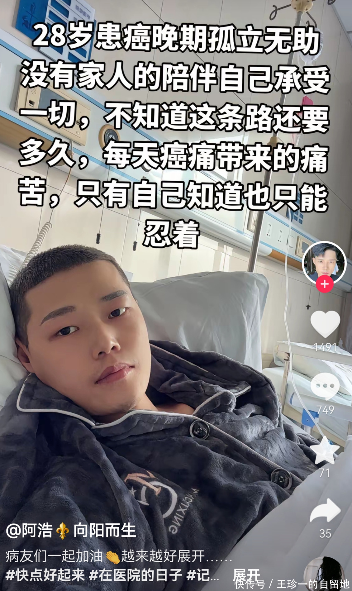 然而病魔实在太残酷了,从阿浩账号的视频中可以看到,仅仅几个月时间,阿浩就瘦得皮包骨。