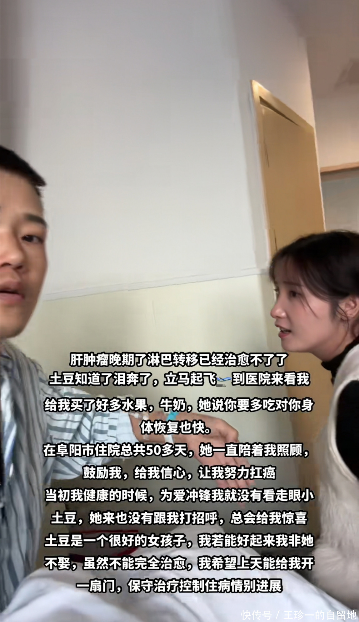 小土豆不仅不分手,还在医院不离不弃的照顾他。